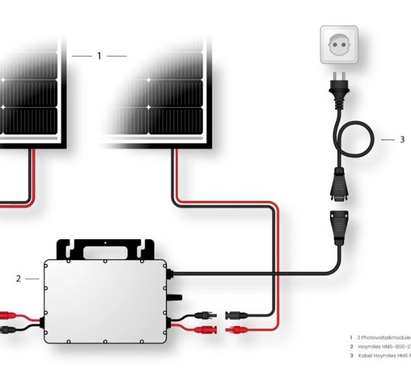 Solarpaneele: Die Hauptkomponente des Balkonkraftwerks sind die Solarmodule. Diese bestehen aus Photovoltaikzellen, die Sonnenlicht in elektrischen Strom umwandeln. Die Paneele sind meist platzsparend und in gängigen Größen erhältlich, die einfach an Balkonbrüstungen oder Fassaden montiert werden können.